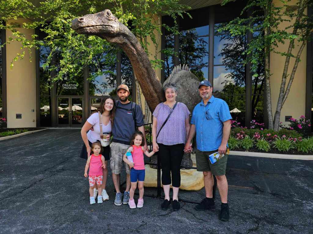 Then, Esther had a wonderful opportunity to make a short trip to Kentucky to visit with her west coast family and those working at the Ark (this now included Lydia and Sarah who work there every summer in the zoo). Our cousins from Ohio were able to join us as well as long time family friend Nikki (Ranalli) Barker and her husband Derek. We had such a great time exploring the Creation Museum and Ark Encounter together, laughing, taking photos, holding babies, eating meals together…truly a wonderful time!
